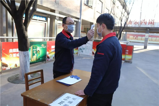 當(dāng)天,在西鳳集團(tuán)公司大門、生產(chǎn)門及車間大門設(shè)置有三道檢測“關(guān)口”,員工憑上班通勤證、身份證和生活I(lǐng)C卡經(jīng)測量體溫并登記后方可以進(jìn)入生產(chǎn)崗位。各車間按照防控要求,設(shè)置專人負(fù)責(zé)消毒防護(hù)和體溫檢測,并要求全員全程佩戴口罩,分區(qū)域休息,私人物品定點(diǎn)分開擺放,工作餐采取盒飯分散就餐,最大限度減少人員接觸聚集。