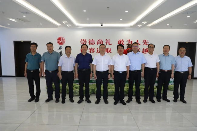 7月28日,鳳翔區(qū)委書記趙永懷,區(qū)長(zhǎng)王宏強(qiáng),區(qū)人大常委會(huì)主任王明明,區(qū)政協(xié)主席魯立,高新區(qū)黨工委副書記、管委會(huì)常務(wù)副主任牟懷書,區(qū)總工會(huì)主席陳勇鋒帶領(lǐng)相關(guān)部門負(fù)責(zé)人來西鳳集團(tuán)公司慰問,為廣大干部職工送來絲絲“清涼”。西鳳集團(tuán)公司黨委書記、董事長(zhǎng)、股份公司董事長(zhǎng)張正,集團(tuán)公司黨委副書記、總裁楊宏亮,股份公司副董事長(zhǎng)、總經(jīng)理賈智勇,股份公司副總經(jīng)理師紅勤熱情接待。