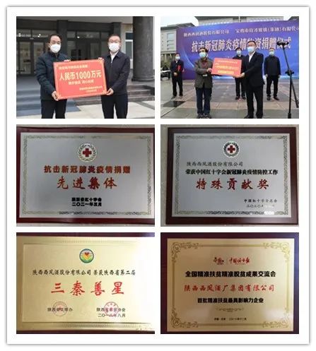 同時(shí),西鳳股份公司積極履行社會(huì)責(zé)任,投身愛(ài)心助學(xué)、抗震救災(zāi)、脫貧攻堅(jiān)、擁軍優(yōu)屬等慈善幫扶事業(yè),僅在疫情防控方面向全社會(huì)累計(jì)捐款捐物價(jià)值達(dá)4000多萬(wàn)元。企業(yè)先后榮獲全國(guó)“首批精準(zhǔn)扶貧最具影響力企業(yè)”“中國(guó)企業(yè)社會(huì)責(zé)任杰出企業(yè)獎(jiǎng)”“中國(guó)紅十字會(huì)新冠肺炎疫情防控工作特殊貢獻(xiàn)獎(jiǎng)”“陜西省紅十字會(huì)抗擊新冠肺炎疫情捐贈(zèng)先進(jìn)集體”,多次被授予“三秦善星”等榮譽(yù)稱號(hào)。
