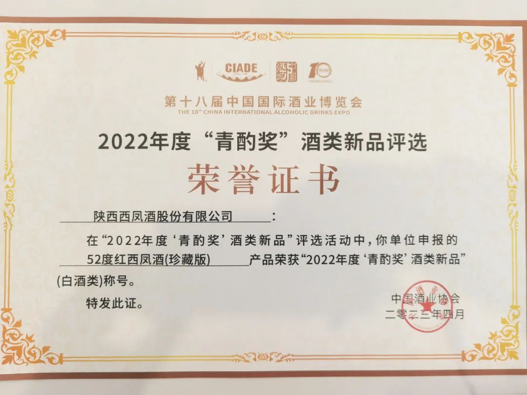 4月13日,中國(guó)酒業(yè)協(xié)會(huì)發(fā)布2022年度“青酌獎(jiǎng)”酒類(lèi)新品榜單,西鳳酒戰(zhàn)略產(chǎn)品五星紅西鳳【52度紅西鳳酒(正藏版)】榮膺2022年度青酌獎(jiǎng)“酒類(lèi)新品”稱(chēng)號(hào)。同時(shí),西鳳酒參賽作品“西鳳酒·河”,榮獲2023最美酒瓶設(shè)計(jì)大賽,概念設(shè)計(jì)組三等獎(jiǎng)。